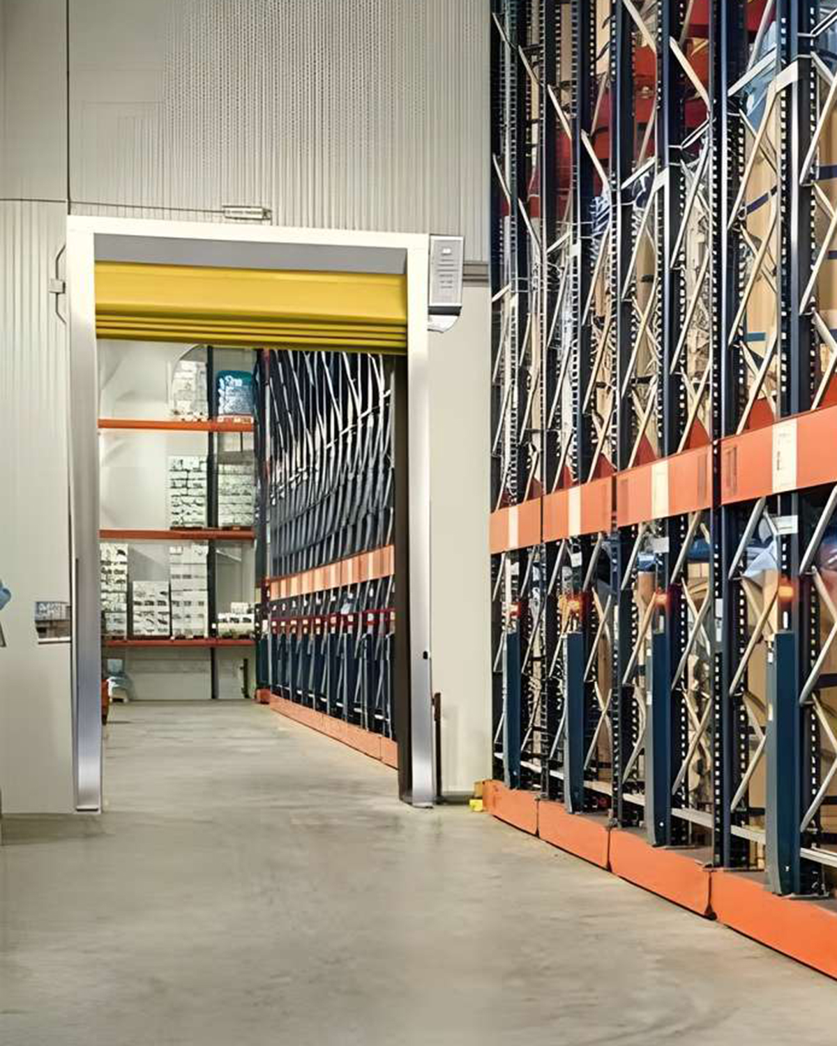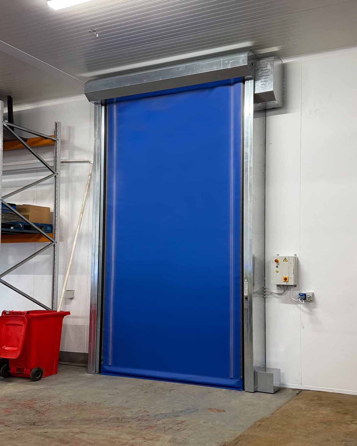 Insulated high speed cold storage door built for refrigerated environments down to -10 degrees.