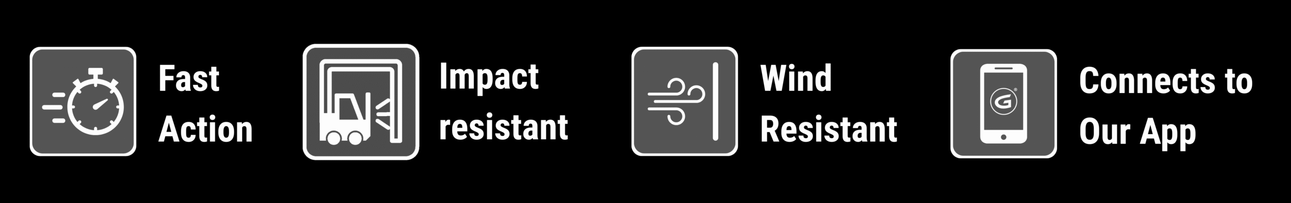 Flexible Bottom Edge – The door’s soft bottom edge flexes around obstructions upon impact (including people), preventing entrapment and improving on-site safety.